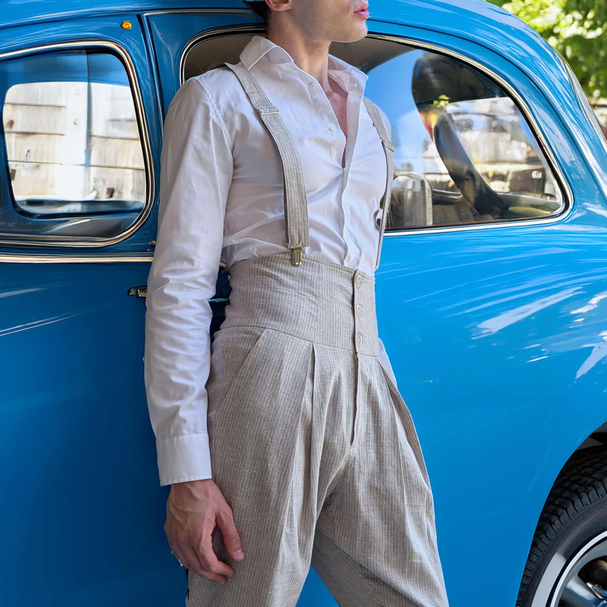 Grâce à son style années 50, le pantalon corseté Déméter vient mettre en valeur votre corps. Ses bretelles ajustables et son élégance intemporelle en font un choix chic et audacieux pour toute occasion. Optez pour la classe avec Déméter.