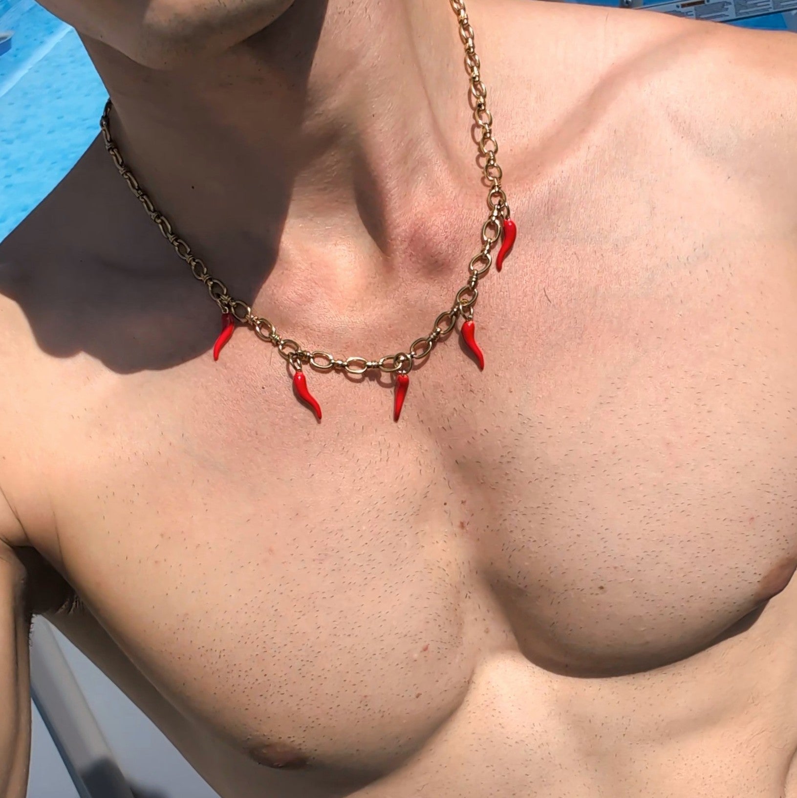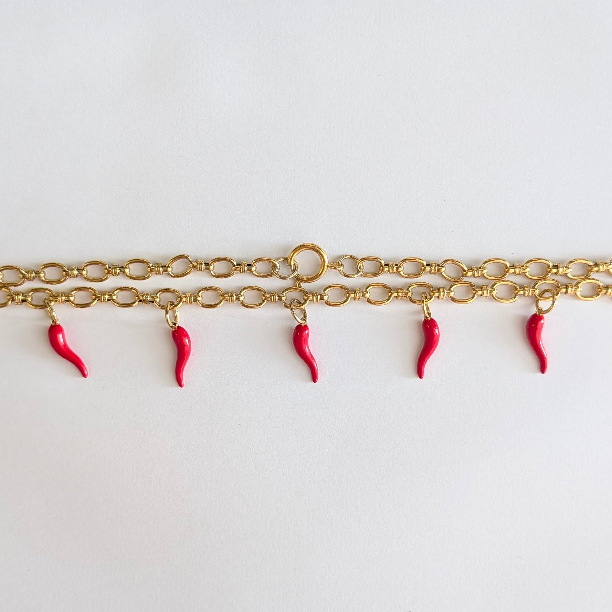 Ajoutez du piquant à votre style avec notre collier Pyrex ! Fabriqué en acier inoxydable et doté d'une chaîne dorée, il présente des pendentifs en forme de piment, pour une touche fun et audacieuse. Apportez une touche de chaleur et de sex-appeal à vos tenues avec ce collier unique.